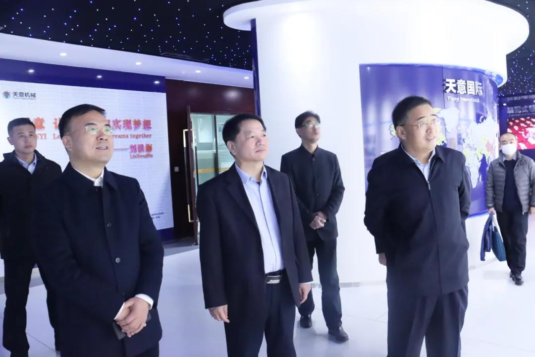 11月24日,山東省檢察院檢委會(huì)專職委員蔣萬云一行蒞臨天意機(jī)械考察調(diào)研。濟(jì)寧市檢察院黨組書記、檢察長宋曉磊,第八檢察部主任陳玲,區(qū)檢察院黨組書記、檢察長安如喜,黨組成員、副檢察長李秀貞,天意機(jī)械董事長劉洪彬等領(lǐng)導(dǎo)陪同調(diào)研。